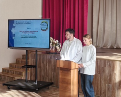 Перед учащимися выступил руководитель по военно-патриотическому воспитанию Хоменок Николай Владимирович, который акцентировал внимание не том, что активная гражданская позицию способствует формированию патриотизма, укреплению знаний о правовой и исторической базе нашей страны.