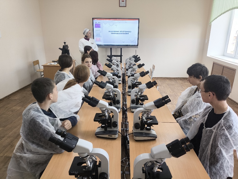 Затем ребята посетили занятие по эпизоотологии и инфекционным болезням животных с основами микробиологии и вирусологии. Преподаватель Кучко А.М. познакомил учащихся с темой «Приготовление и окраска мазков простым способом», что позволило им увидеть, как проводятся исследования на наличие заболеваний у животных.