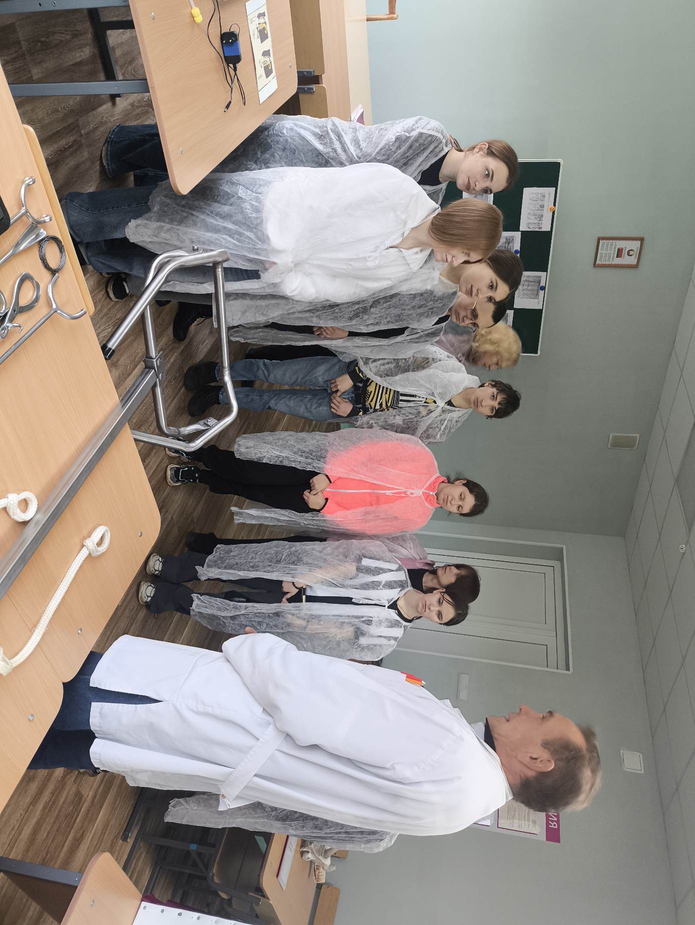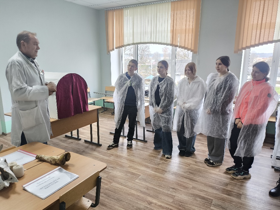 Следующим был урок по ветеринарной хирургии, который провел Карпович Е. Л. Темой занятия стала «Техника наложения повязок». Учащиеся узнали о необходимых навыках, которые должны быть у ветеринарного специалиста, и о том, как правильно оказывать первую помощь животным.