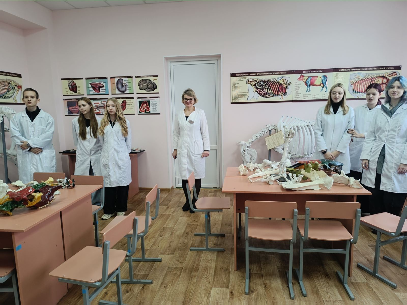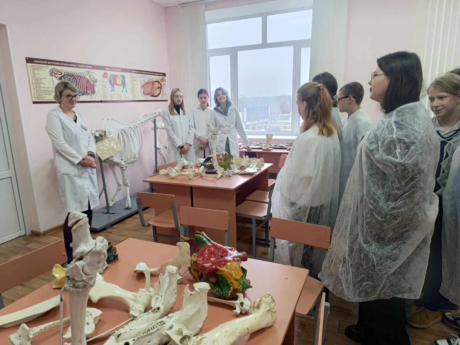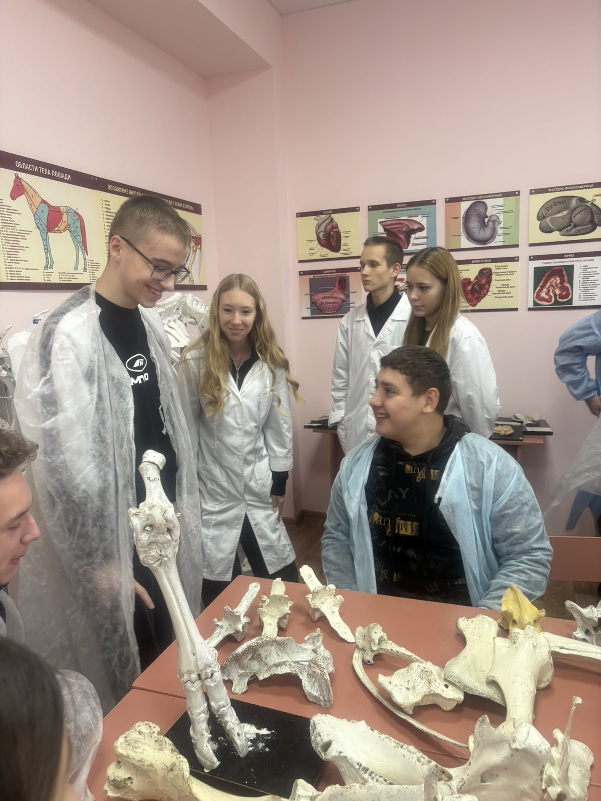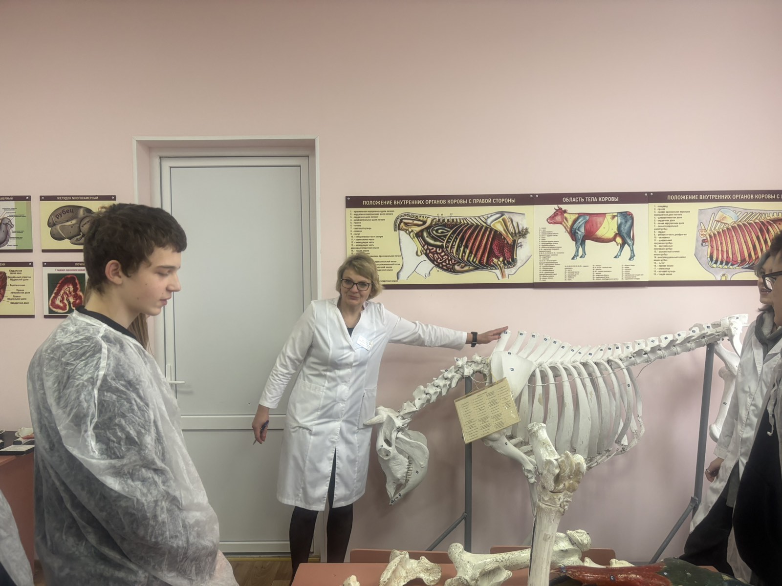 Следующей темой обсуждения стали эпизоотологии и инфекционные болезни животных. Преподаватель Кучко А.М. ознакомил учеников с техникой выполнения мазков и методами определения заболеваний с помощью микроскопов. Это знание крайне важно для будущих ветеринаров, так как диагностика заболеваний животных требует высокой квалификации и точности. Также была представлена анатомия и физиология сельскохозяйственных животных, где преподаватель Фролова О.В. совместно с обучающимися колледжа продемонстрировал строение различных животных, что вызвало большой интерес у школьников.