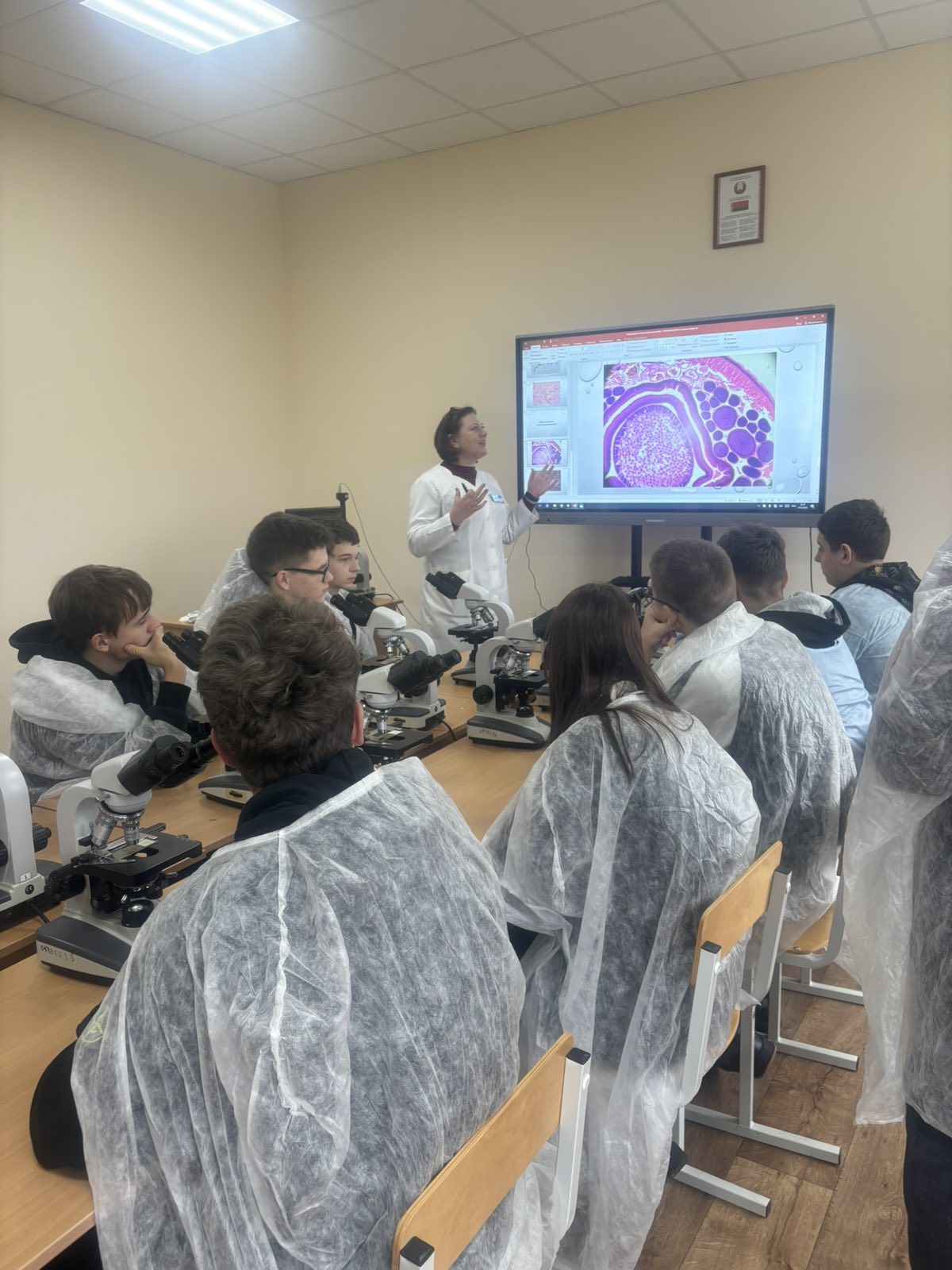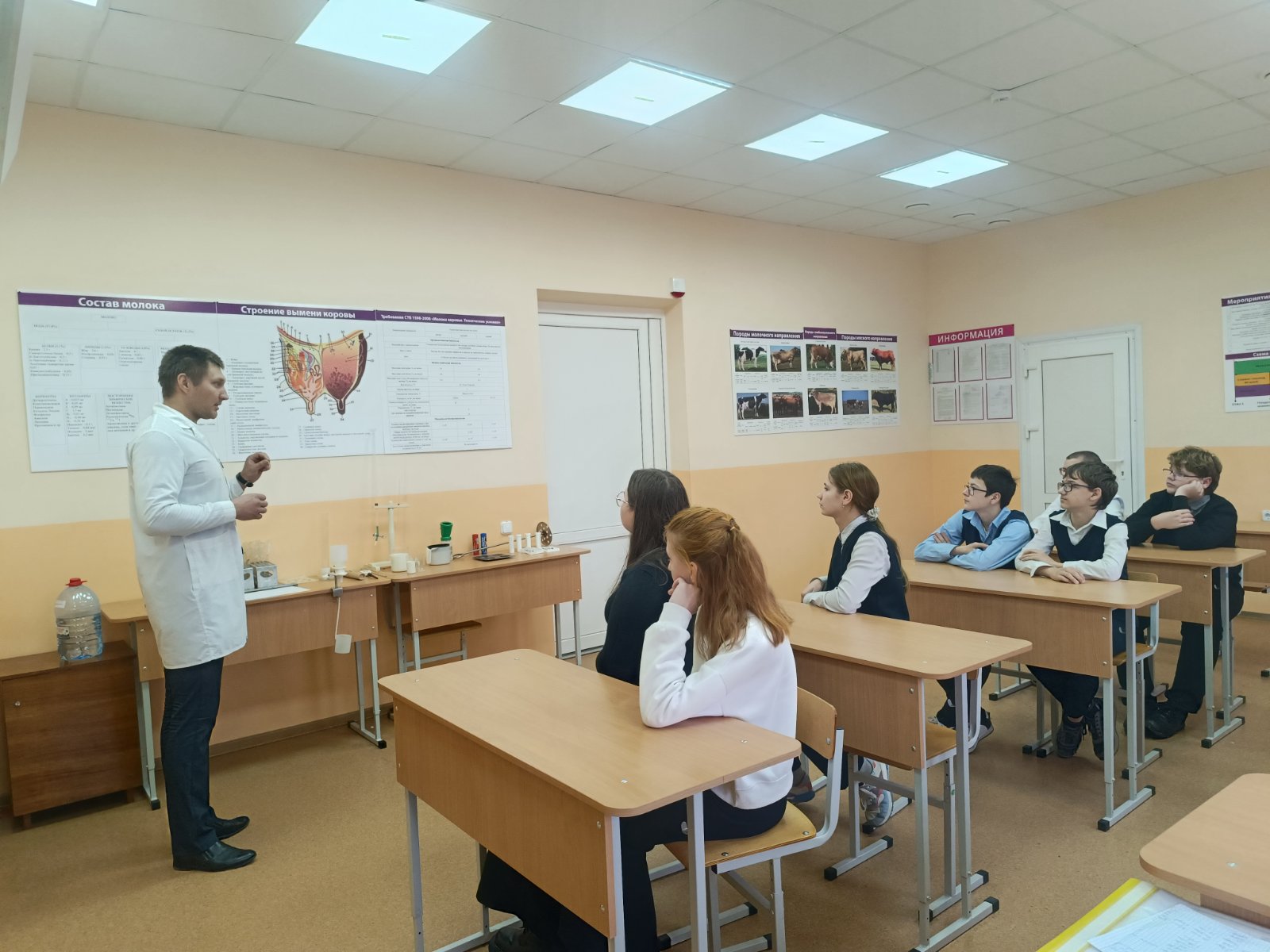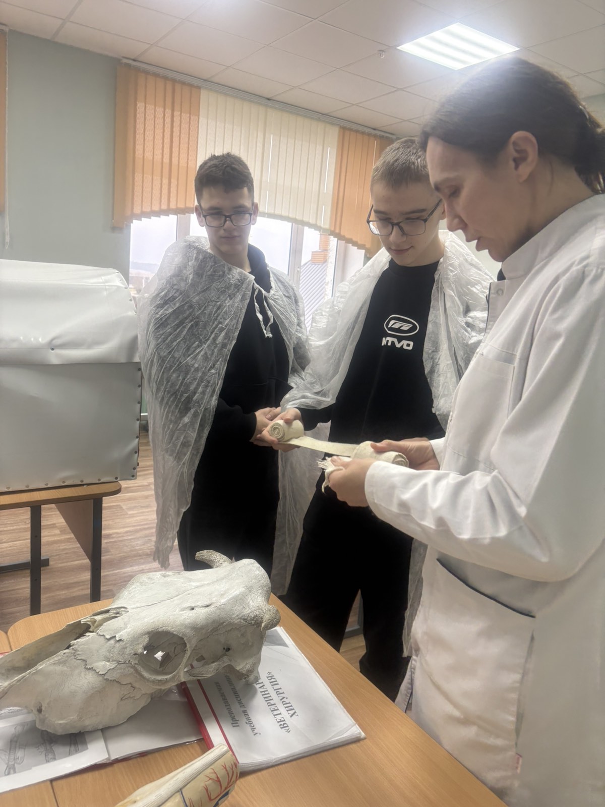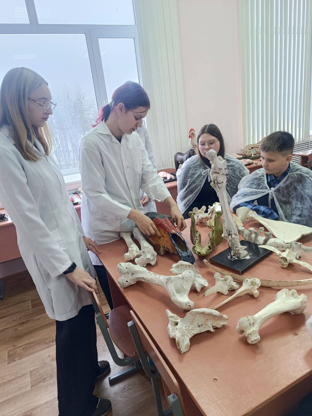 Следующей темой обсуждения стали эпизоотологии и инфекционные болезни животных. Преподаватель Кучко А.М. ознакомил учеников с техникой выполнения мазков и методами определения заболеваний с помощью микроскопов. Это знание крайне важно для будущих ветеринаров, так как диагностика заболеваний животных требует высокой квалификации и точности. Также была представлена анатомия и физиология сельскохозяйственных животных, где преподаватель Фролова О.В. совместно с обучающимися колледжа продемонстрировал строение различных животных, что вызвало большой интерес у школьников.