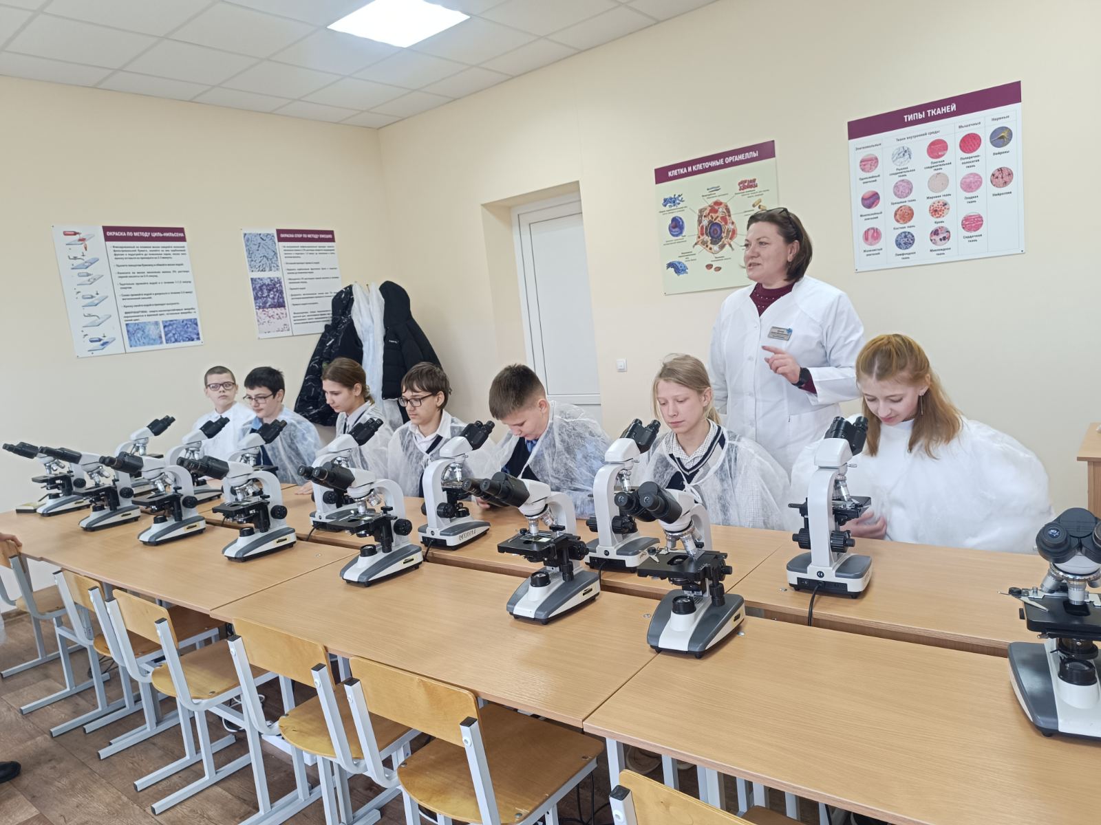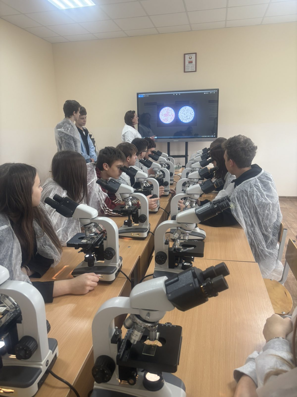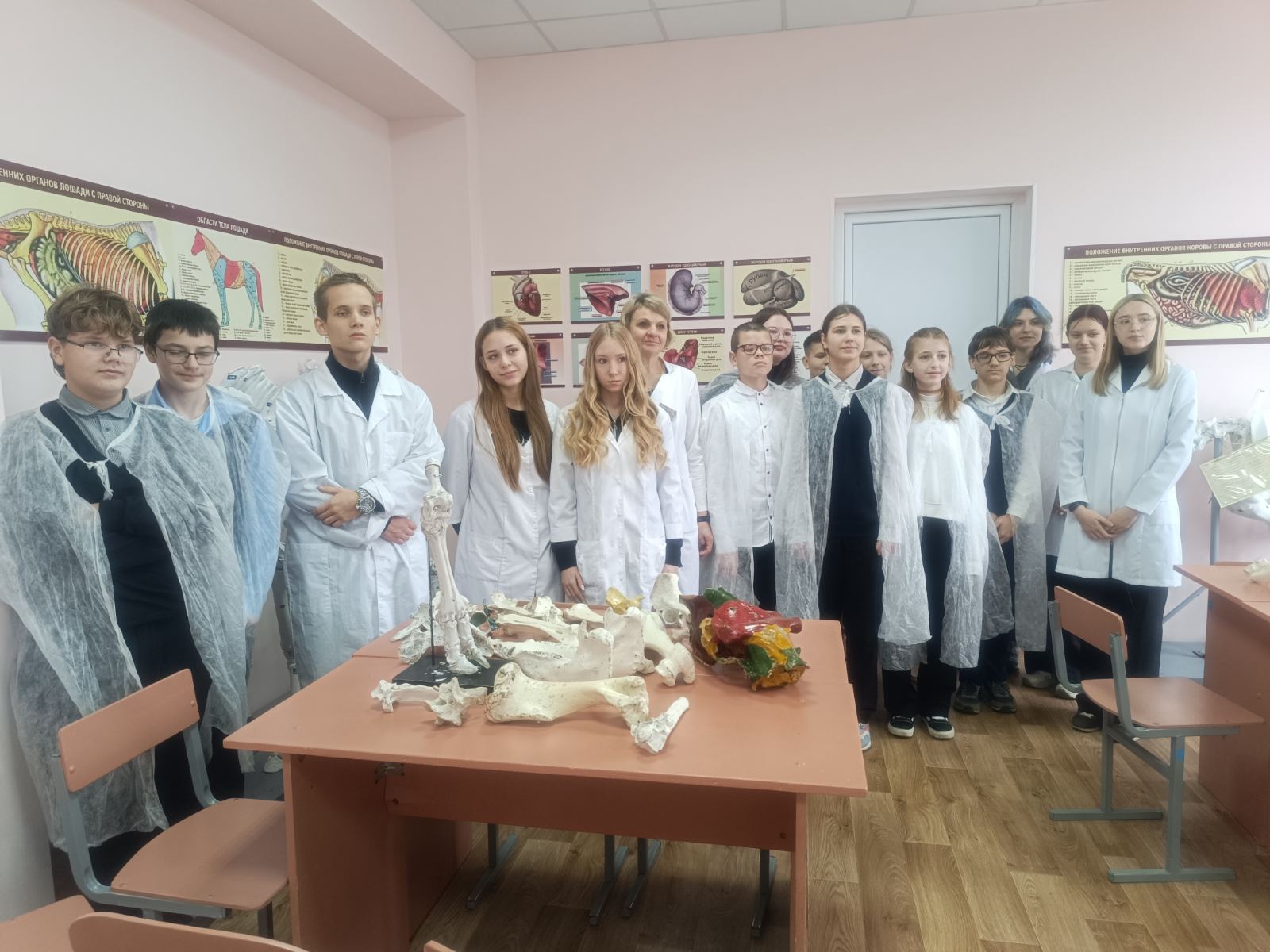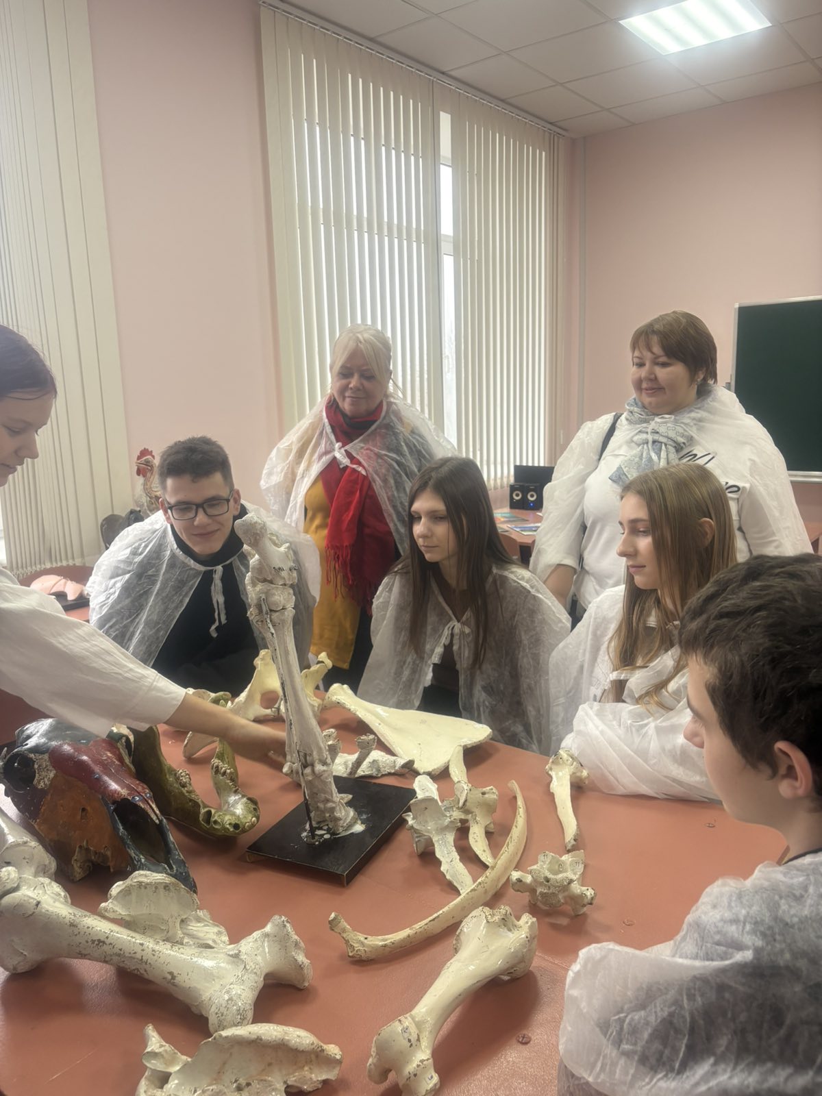 Следующей темой обсуждения стали эпизоотологии и инфекционные болезни животных. Преподаватель Кучко А.М. ознакомил учеников с техникой выполнения мазков и методами определения заболеваний с помощью микроскопов. Это знание крайне важно для будущих ветеринаров, так как диагностика заболеваний животных требует высокой квалификации и точности. Также была представлена анатомия и физиология сельскохозяйственных животных, где преподаватель Фролова О.В. совместно с обучающимися колледжа продемонстрировал строение различных животных, что вызвало большой интерес у школьников.