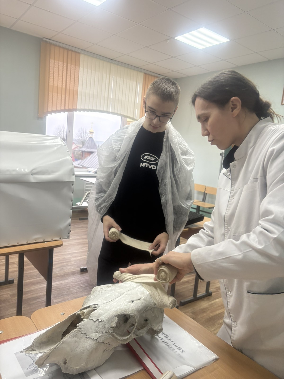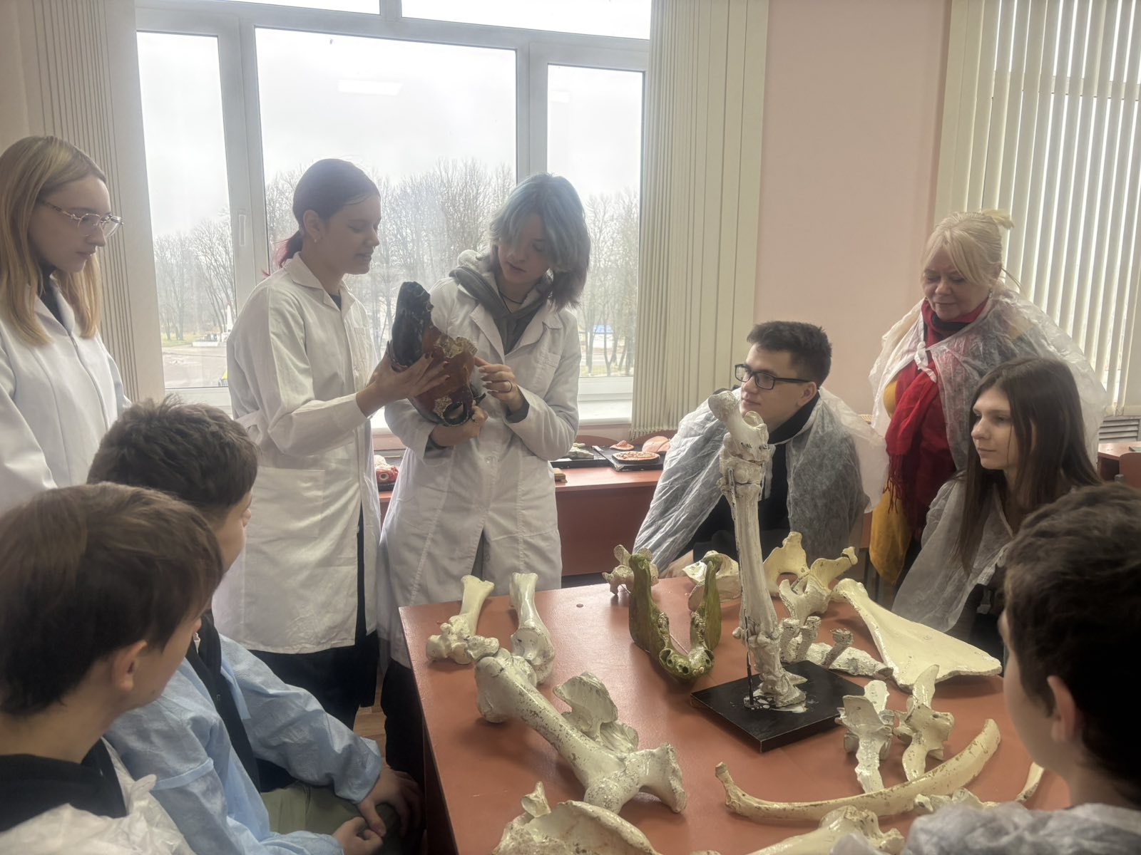 В ходе мероприятия ученики посетили две ключевые специальности, которые предлагает колледж. Первая из них — «Ветеринарная медицина». На этой площадке учащиеся смогли познакомиться с различными аспектами ветеринарного дела. Преподаватель Чиркевич И.Г. рассказал о родоспоможении, освещая важные темы акушерства и гинекологии. Затем студенты посетили площадку, посвящённую хирургическим инструментам и технике наложения перевяок, где преподаватель Карпович Е.Л. показала, какие иснтрументы используются при операциях и как правильно проводить перевязки различными способами, что является неотъемлемой частью работы ветеринара.