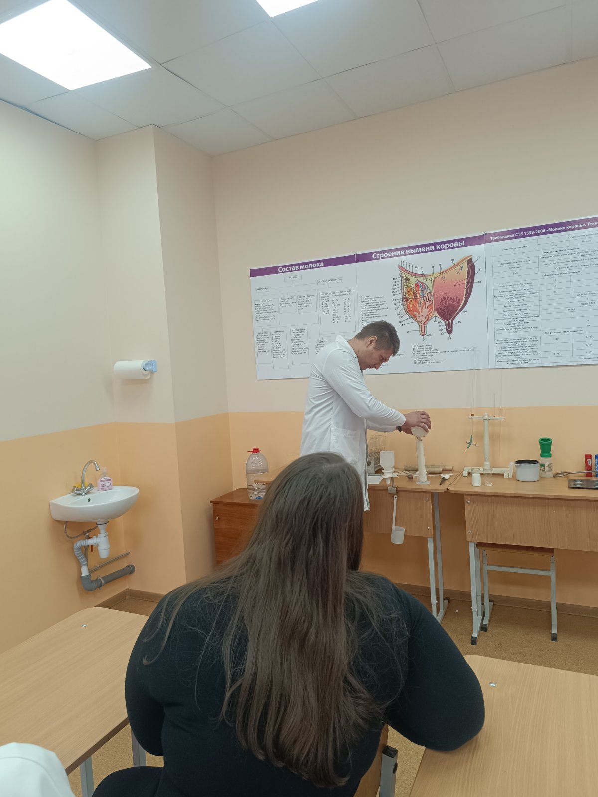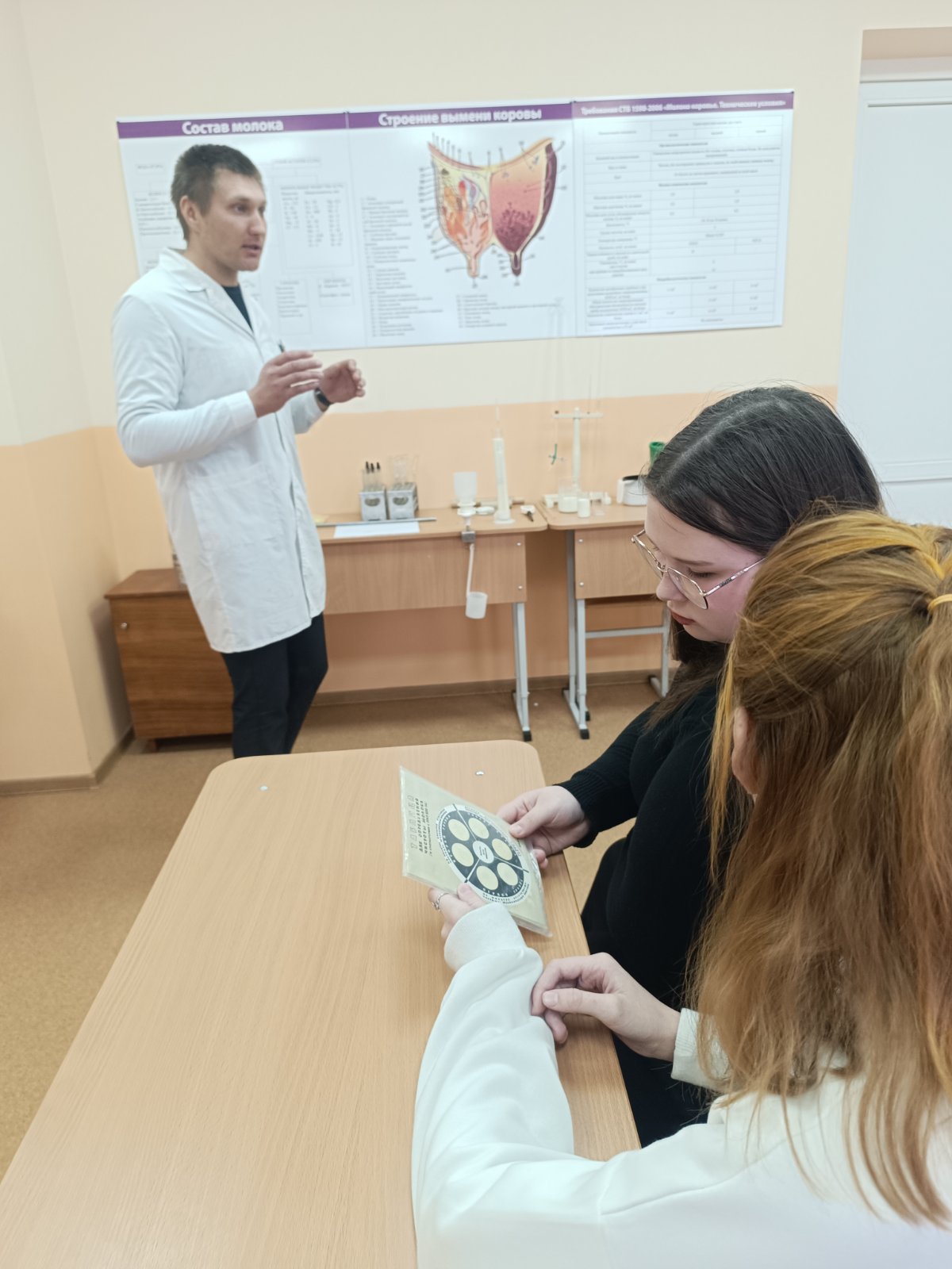 Вторая специальность, представленная на дне открытых дверей — «Производство продукции животного происхождения». Учащиеся узнали о разведении сельскохозяйственных животных и основах селекции. Преподаватель Гайчук Т.А. подробно рассказал о методах идентификации животных и инструментах, используемых в этой области. Это знание поможет будущим специалистам эффективно работать с животными и обеспечивать их здоровье и продуктивность.