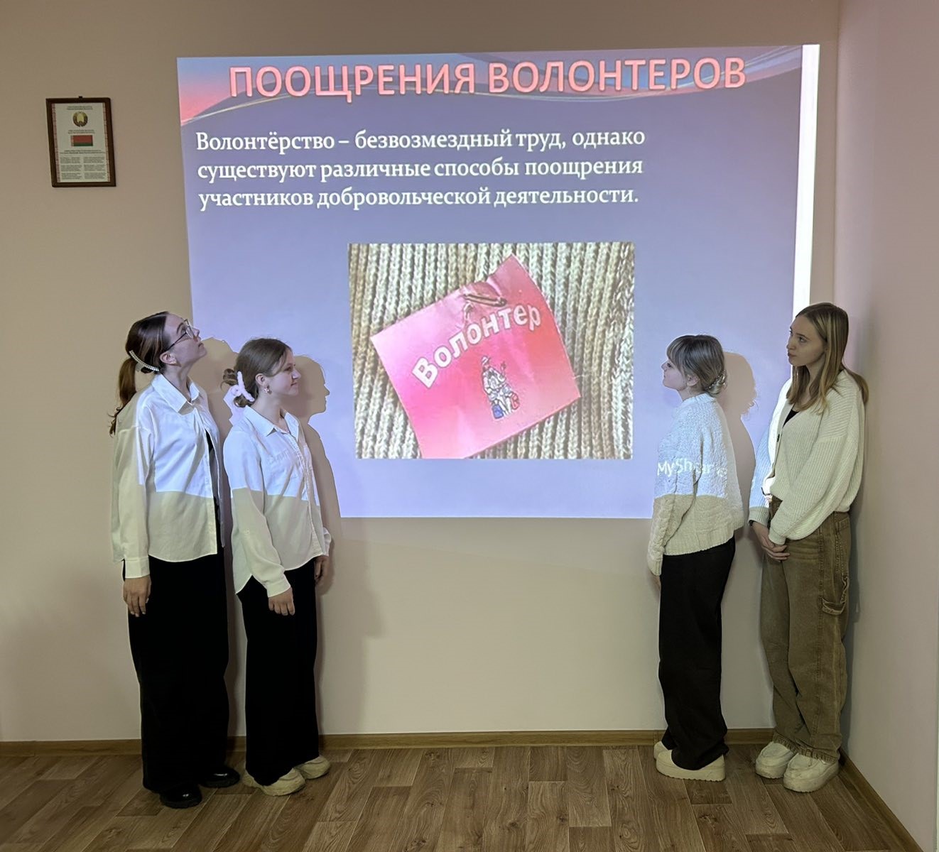 05.12.202505.12.2025 года в колледже состоялась презентация работы волонтерского отряда «Доброе сердце», приуроченная Международному дню волонтеров «Шаги добра». Члены волонтерского отряда рассказали об акциях, которые они организовали: «Обелиск», «Позвони в колокол мира», «Помоги пойти учиться», «День добрых дел», Ветеран живет рядом» и др. Данное мероприятие способствует воспитанию у учащихся чувства ответственности, заботы о ближнем, уважения к старшим.