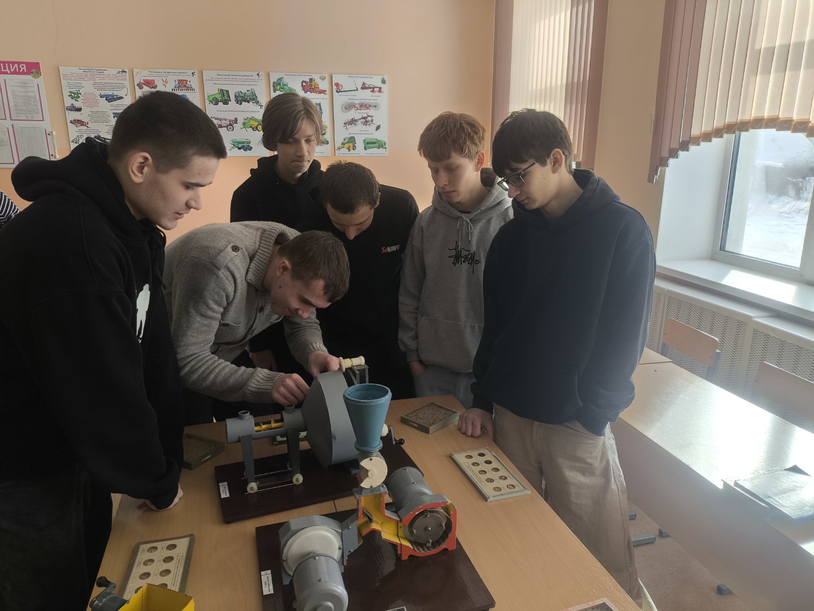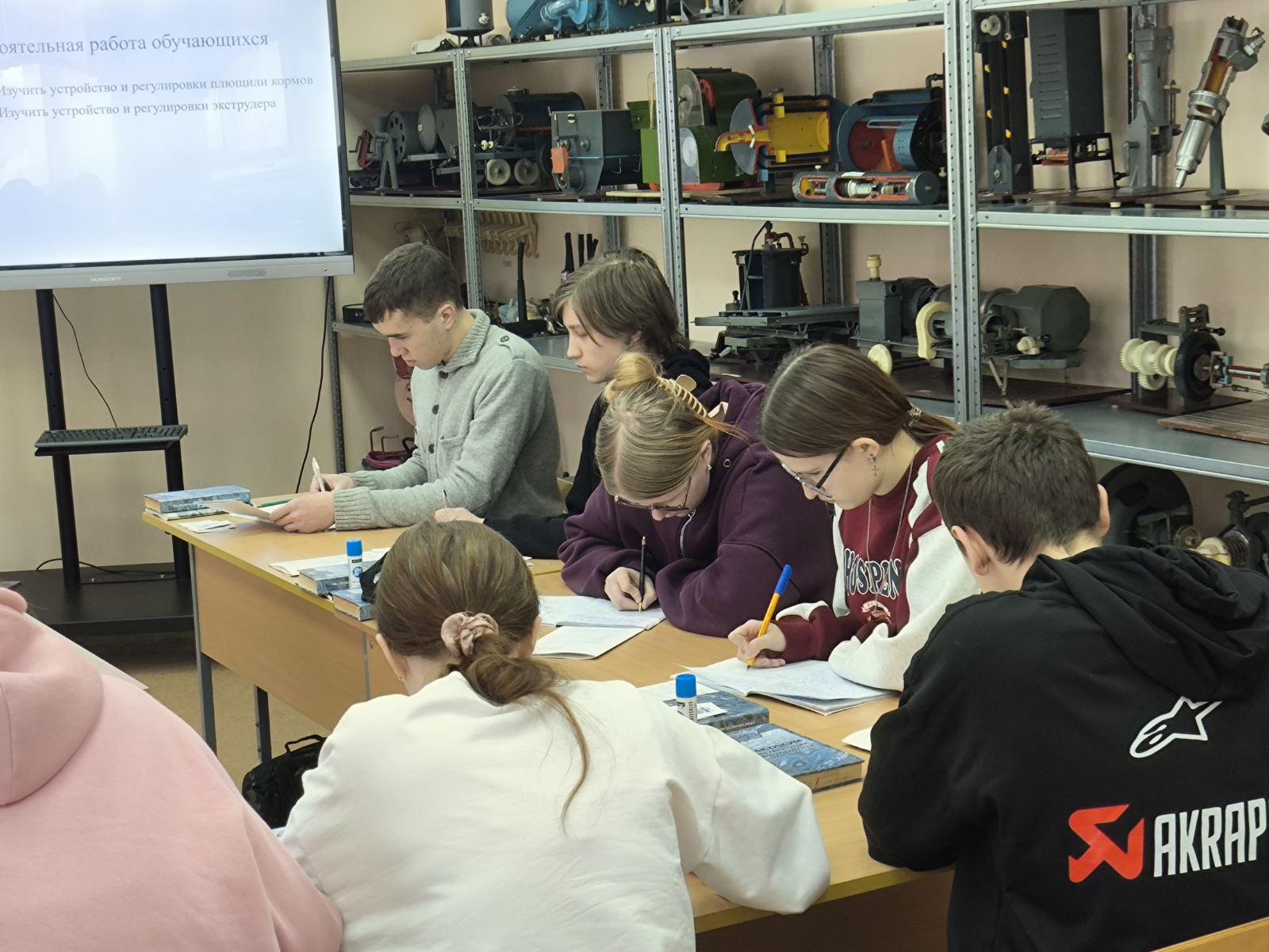 Целью данного занятия было сформировать у обучающих умения выполнять основные регулировки машин, которые используются для плющения кормов и экструзии. Плющение и экструзия кормов играют ключевую роль в повышении их питательной ценности и усвояемости, что, в свою очередь, напрямую влияет на продуктивность животных. Обучающиеся познакомились с основными принципами работы машин, используемых для этих процессов, а также с их конструктивными особенностями.