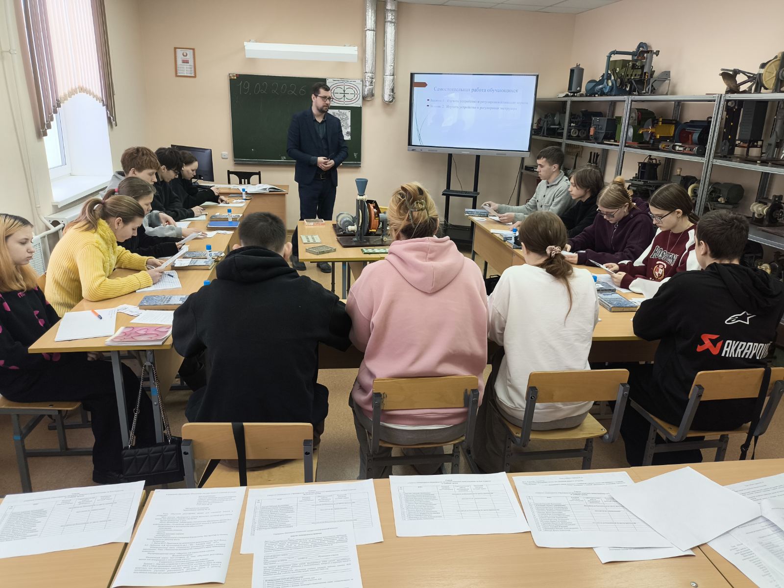 Ключевыми моментами занятия стали обсуждение важности правильного выбора режимов работы машин, а также анализ ошибок, которые могут возникнуть при неправильной настройке оборудования. Преподаватель акцентировал внимание на том, что знание технических характеристик и возможностей машин является основой для успешного выполнения регулировок.