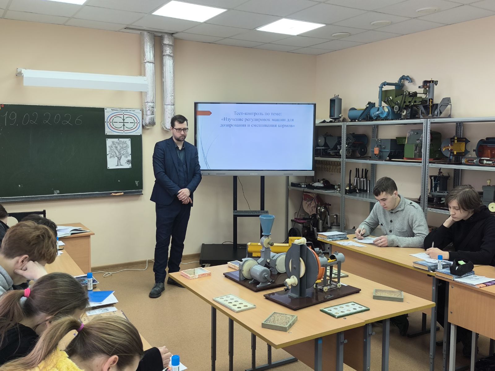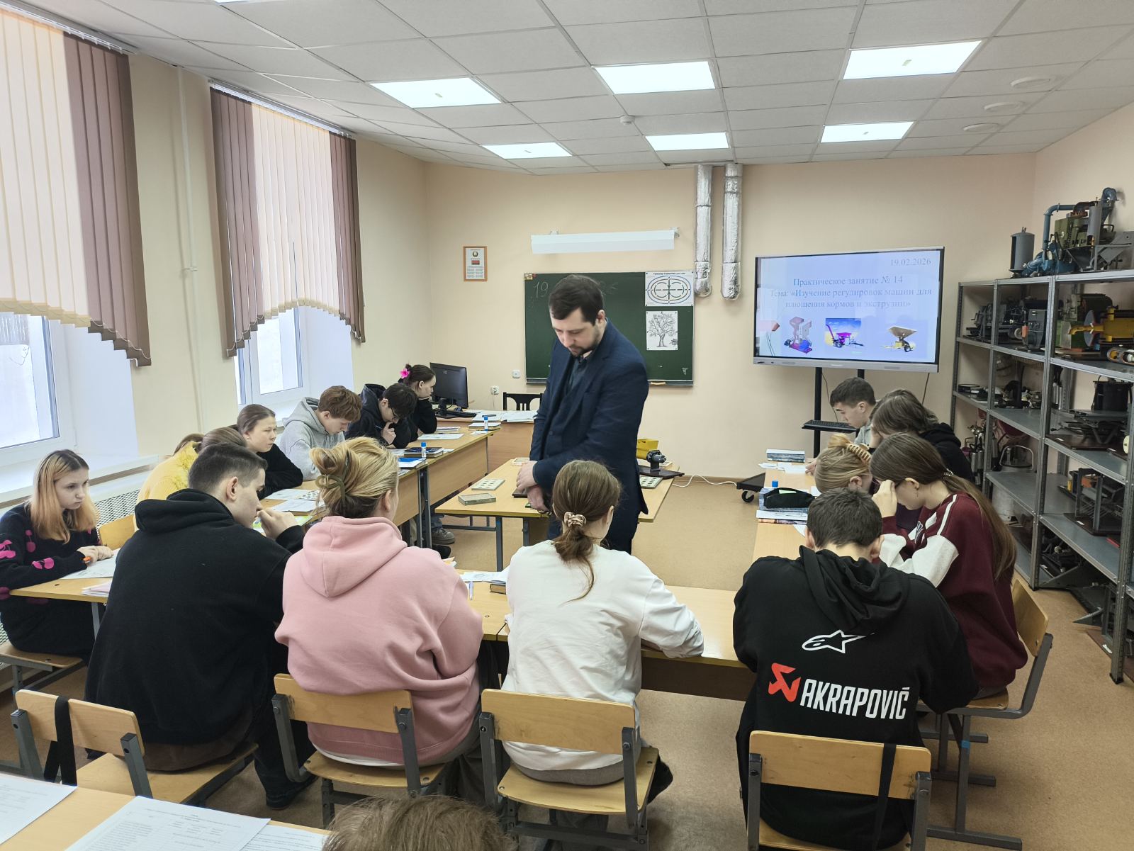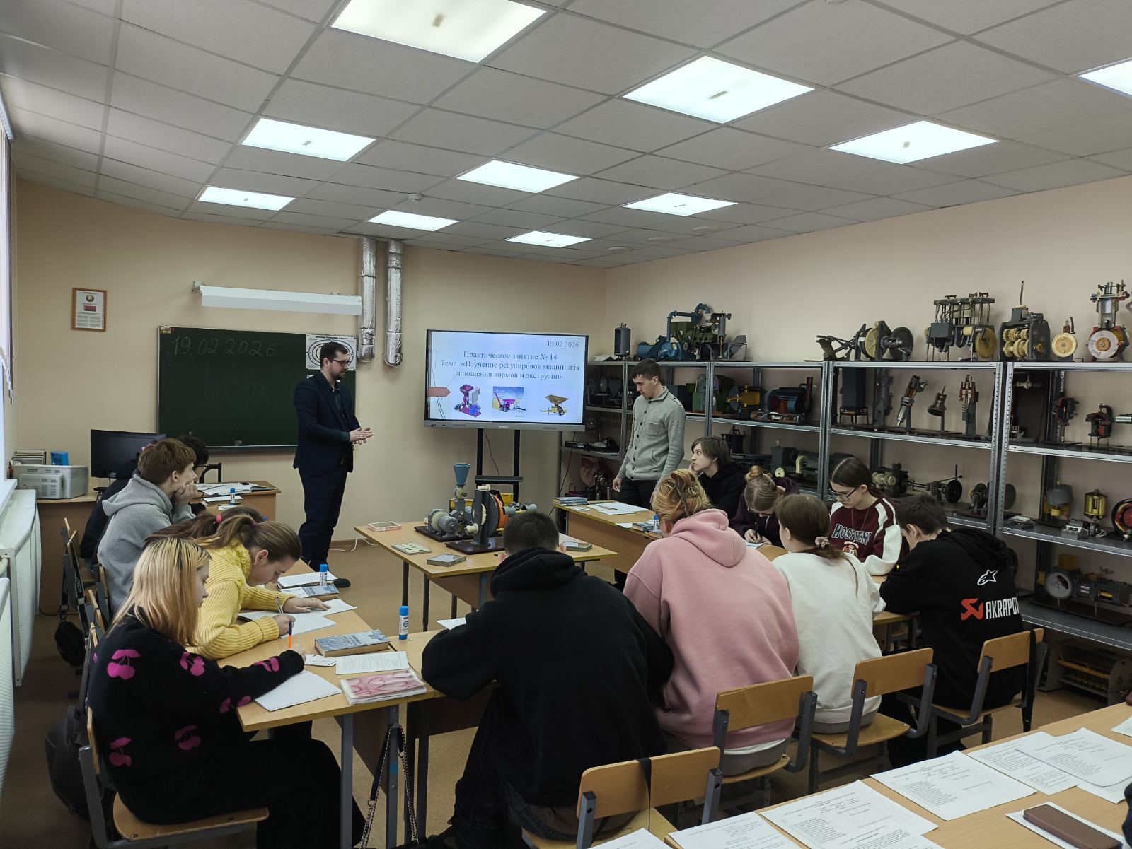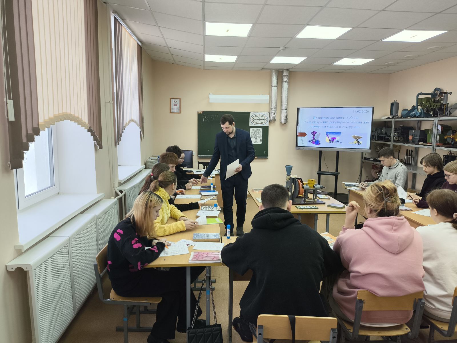 19.02.202619 февраля 2026 года в 21 учебной группе было проведено открытое учебное занятие, организованное преподавателем Дыбой П.М. В рамках занятия обучающиеся смогли углубить свои знания и практические навыки в области технического обеспечения процессов в животноводстве. Темой занятия стало изучение регулировок машин для плющения кормов и экструзии, что является важным аспектом в обеспечении качественного кормления животных.