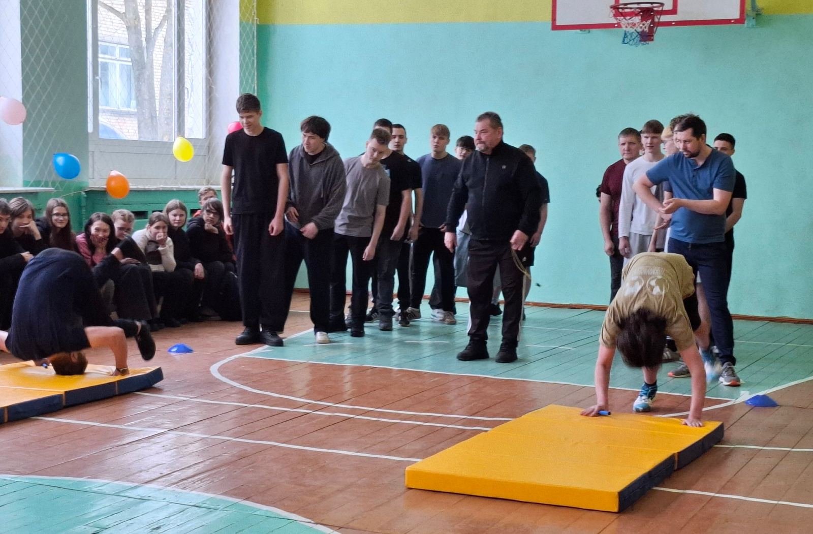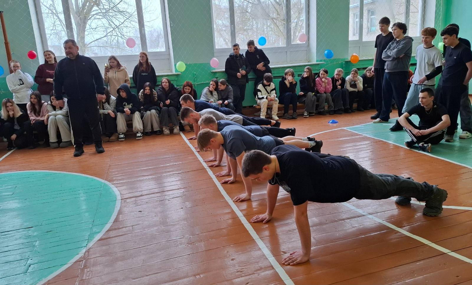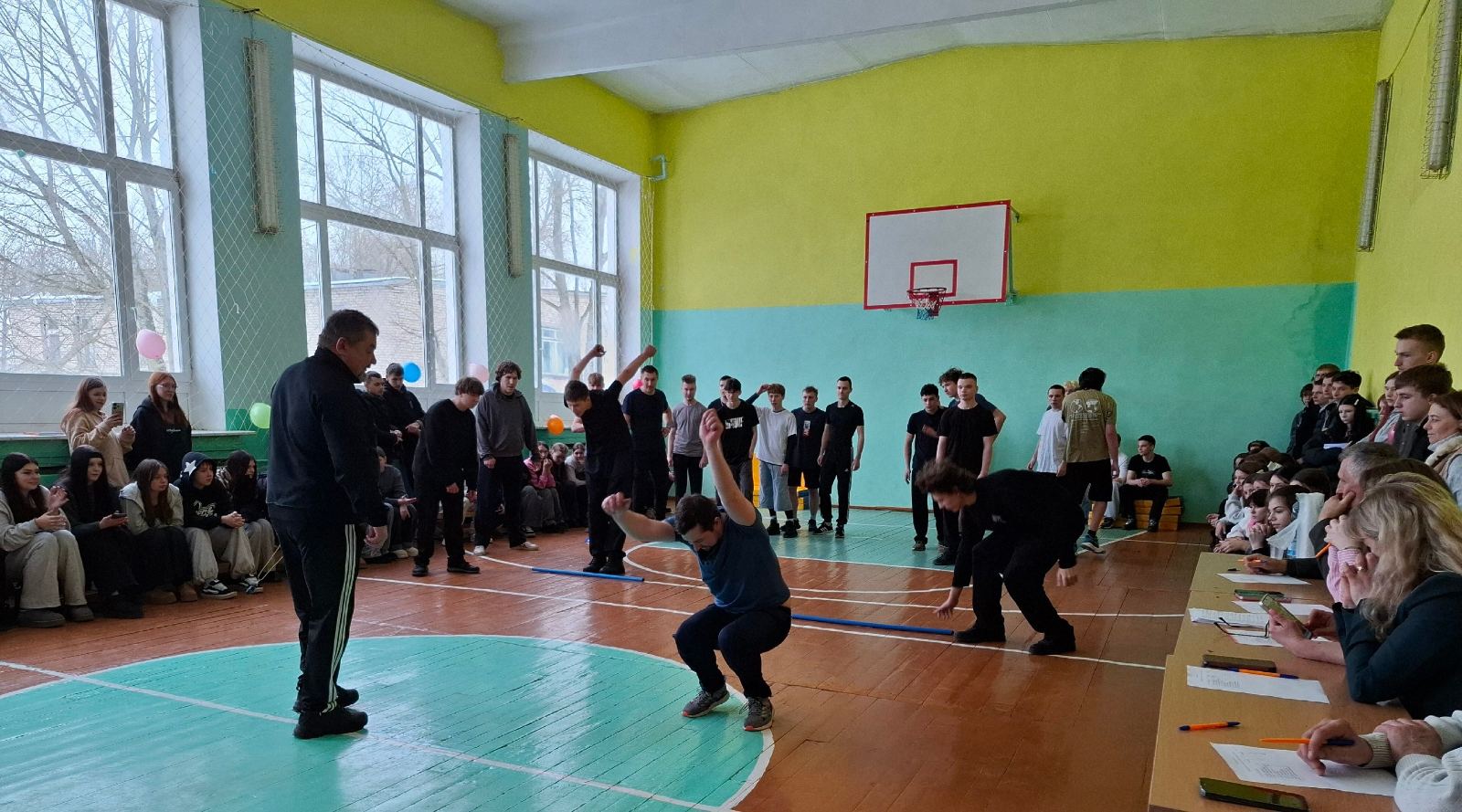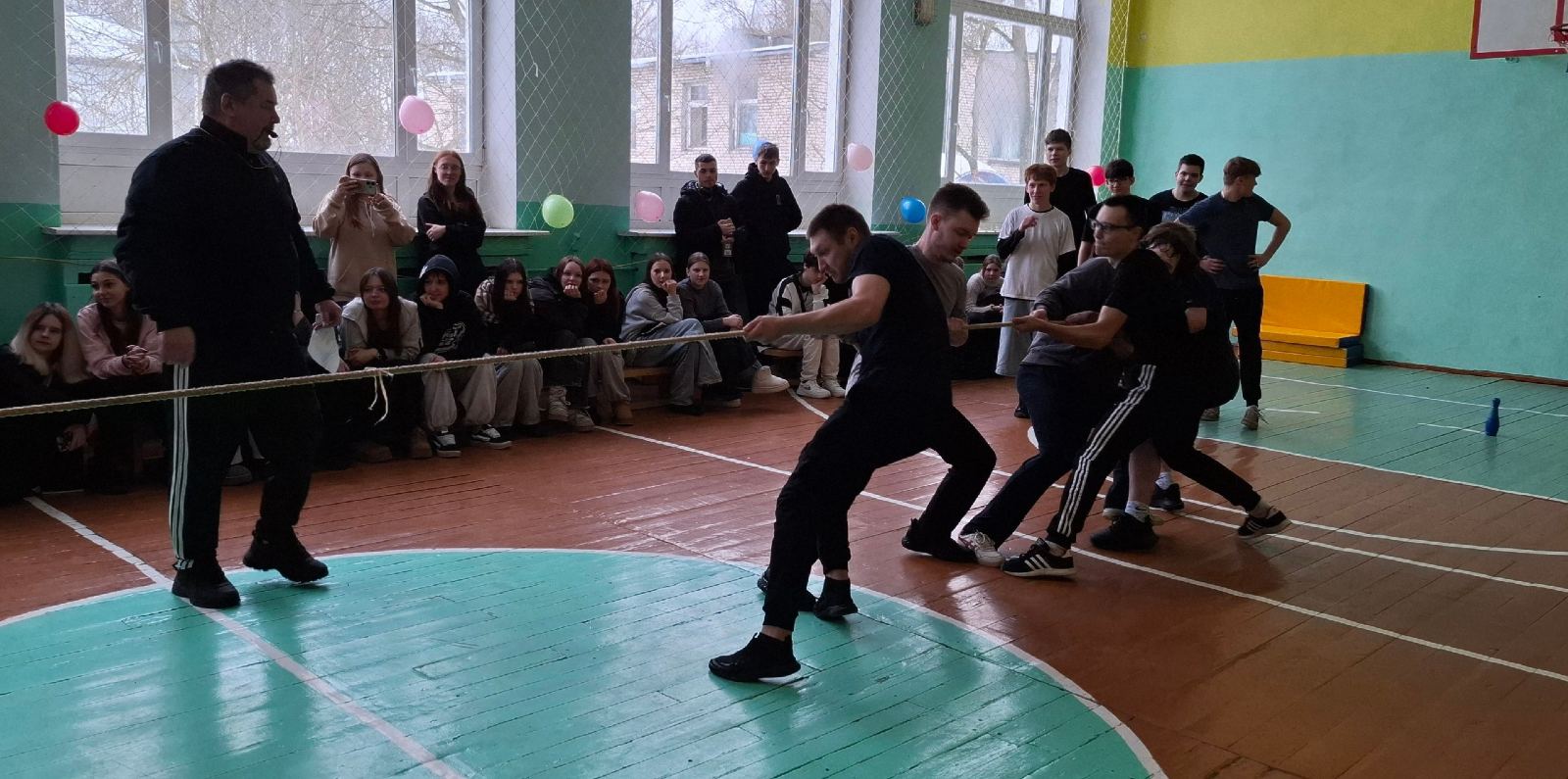 Соревновались две командам, в состав которых вошли как обучающиеся, так и педагоги учреждения образования. Состязания в форме эстафеты были представлены различными видами физической активности: бег, прыжки, перетягивание каната. Выполняя задания, участники команд проявили ловкость, силу, выносливость – те качества, которые в полной мере позволяют мужчинам быть надёжными защитниками семьи, коллектива, Отечества.