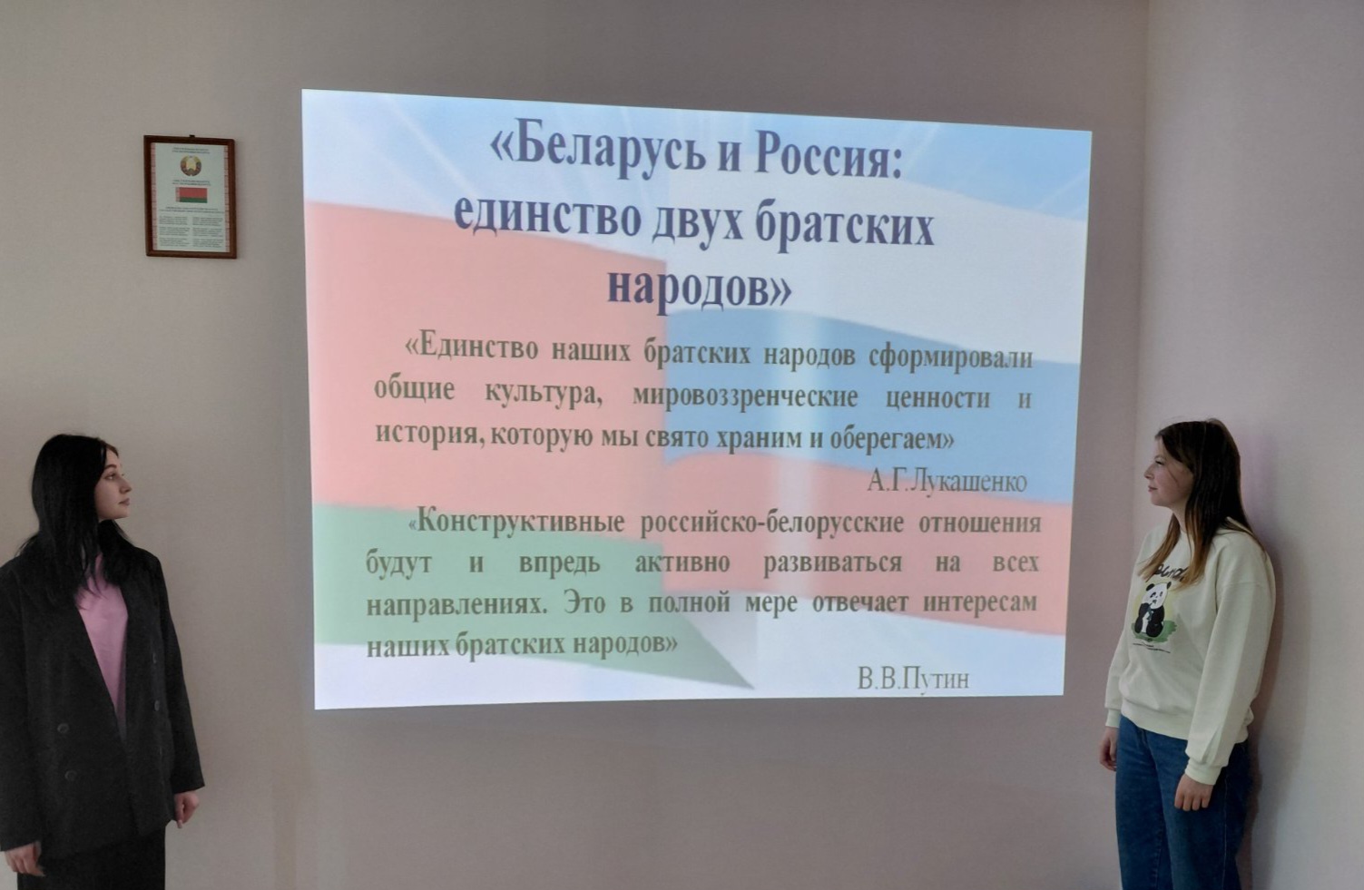 Используя презентацию, учащиеся рассказали о совместной история Беларуси и России, о значение единства для развития обоих государств.
