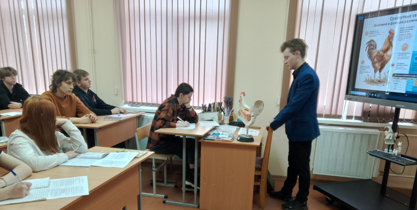 16.04.2026В учреждении образования «Ильянский государственный аграрный колледж» 16.04.2026 преподаватель Мосур Антон Сергеевич провёл открытое занятие по учебному предмету «Животноводство, гигиена и ветеринарная санитария» с группой 201 специальности "Ветеринарная медицина" по теме «Значение птицеводства, биологические особенности и продуктивные качества сельскохозяйственной птицы».