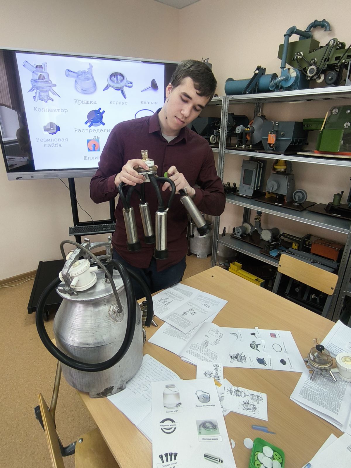 Данное занятие было организовано с целью углубления знаний обучающихся о техническом обеспечении процессов в животноводстве, а также практического освоения навыков работы с доильным оборудованием. В ходе занятия обучающиеся получили возможность не только ознакомиться с теоретическими аспектами конструкции двухтактного доильного аппарата, но и на практике применить свои знания.